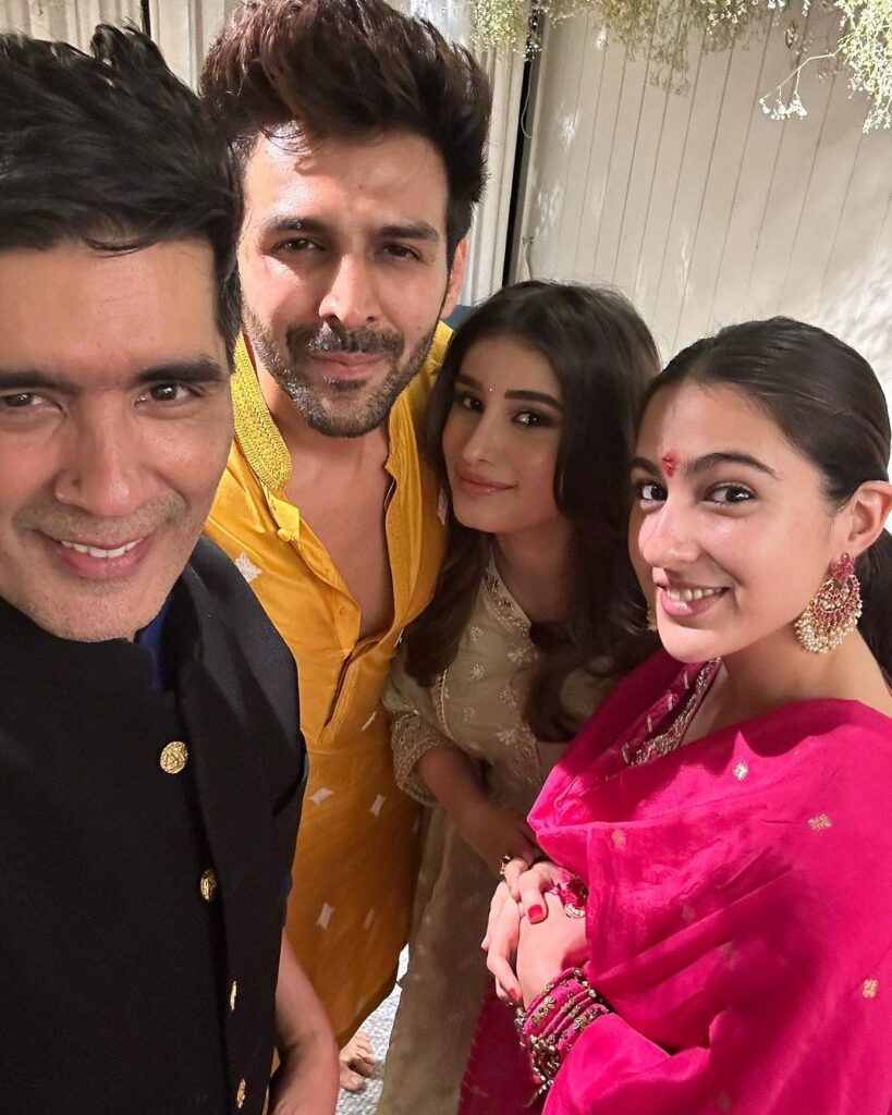 Raveena Tandon went all out to pamper her “in-house Bappa” with grandeur. The celebrations saw the reunion of Sara Ali Khan and Kartik Aaryan, who posed for photos together. Ananya Panday, on the other hand, shared adorable selfies with Rasha Thadani, Raveena’s daughter. The event also saw the presence of industry stalwarts like Karan Johar, Manish Malhotra, Rekha, Urmila Matondkar, and many more.